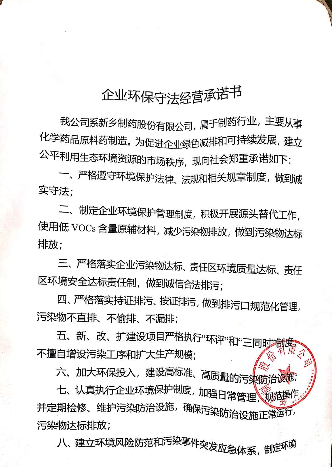 企業(yè)環(huán)保守法經(jīng)營承諾書